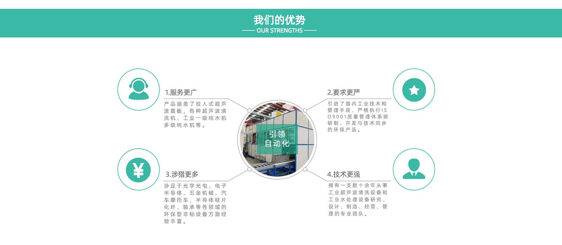 天津市引領自動化科技有限公司是由一支擁有數(shù)十余年工業(yè)超聲波清洗設備和工業(yè)水處理設備研究、設計、制造、經(jīng)營、管理、銷售、服務于一體的企業(yè)。 公司匯集了一批長期致力于工業(yè)清洗設備和工業(yè)水處理設備研發(fā)、設計、制造的人才,引進了國內(nèi)外的工藝技術和管理手段,嚴格執(zhí)行ISO9001質量管理體系,研制、開發(fā)與技術同步的環(huán)保產(chǎn)品。選用日本、美國等原材料、元器件,以設備、熱忱的服務、合理的價格為廣大用戶提供質量穩(wěn)定、外形美觀的十多個系列、百余個規(guī)格的超聲波清洗設備、高壓噴淋清洗設備、工業(yè)水處理設備。產(chǎn)品涵蓋了投入式超聲波震板,單槽式超聲波清洗機、多槽式超聲波清洗機、氣相型清洗機、自動型超聲波清洗機、碳氫類超聲波清洗機,高低壓噴淋清洗機等以及工業(yè)冷水機,工業(yè)一級純水機多級純水機等。 產(chǎn)品具備完善的售前,售中,售后服務制度。尤其在開發(fā)設計光學光電,電子半導體,五金機械,汽車摩托車,電池,半導體硅片,化纖,軸承等各領...